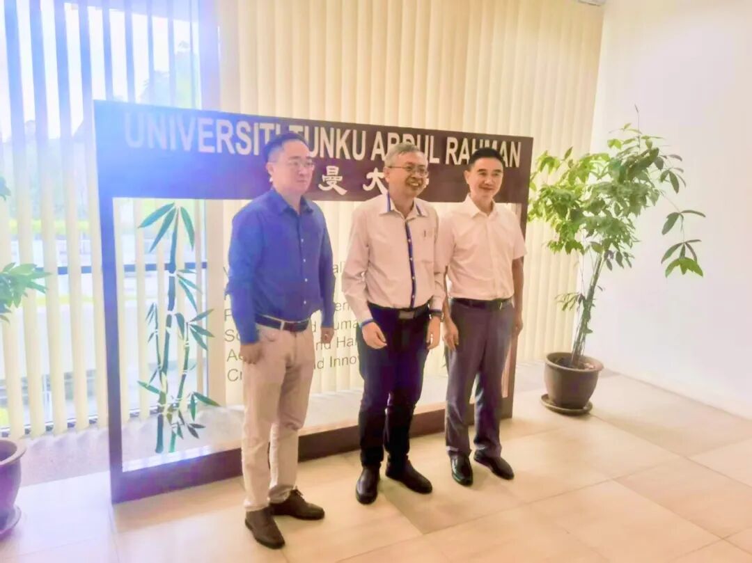 全球芯位教育科技有限公司总经理、芯位学院院长王昆强、拉曼大学校长尤芳达、吉利学院校长助理张泽明合影